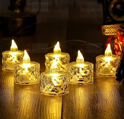 6 Pcs LED Tea Light Candles | Flameless & Smokeless Acrylic Diyas | Battery-Operated | Warm White Candles for Diwali, Festive, Wedding, Party & Christmas Décor (Pack of 6)