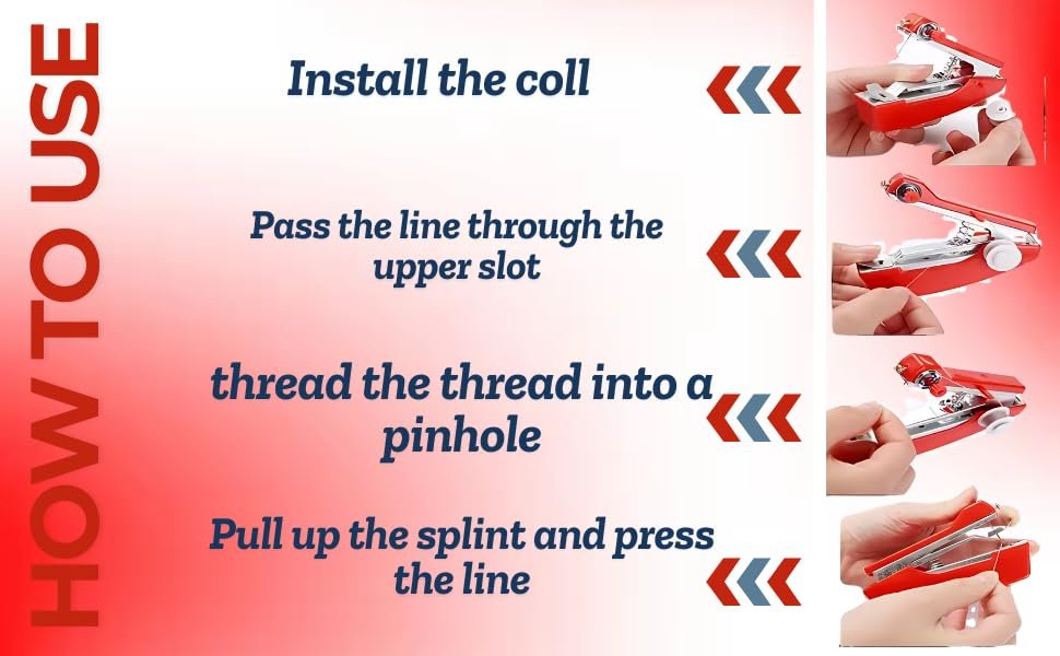 • Garments Cloths-self-feeding Mini Hand Ami Sewing Machine is useful for mending rip, fray and rents in garments. You need only up-down motion like a stapler to sew with this machine.