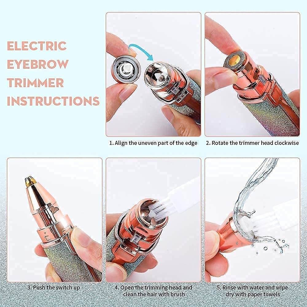 Eyebrow Trimmer for Women – Golden Pink Electric Precision Trimmer with Interchangeable Heads, USB Rechargeable Facial Hair Remover for Eyebrows, Upper Lip & Face, Painless & Portable Beauty Tool
