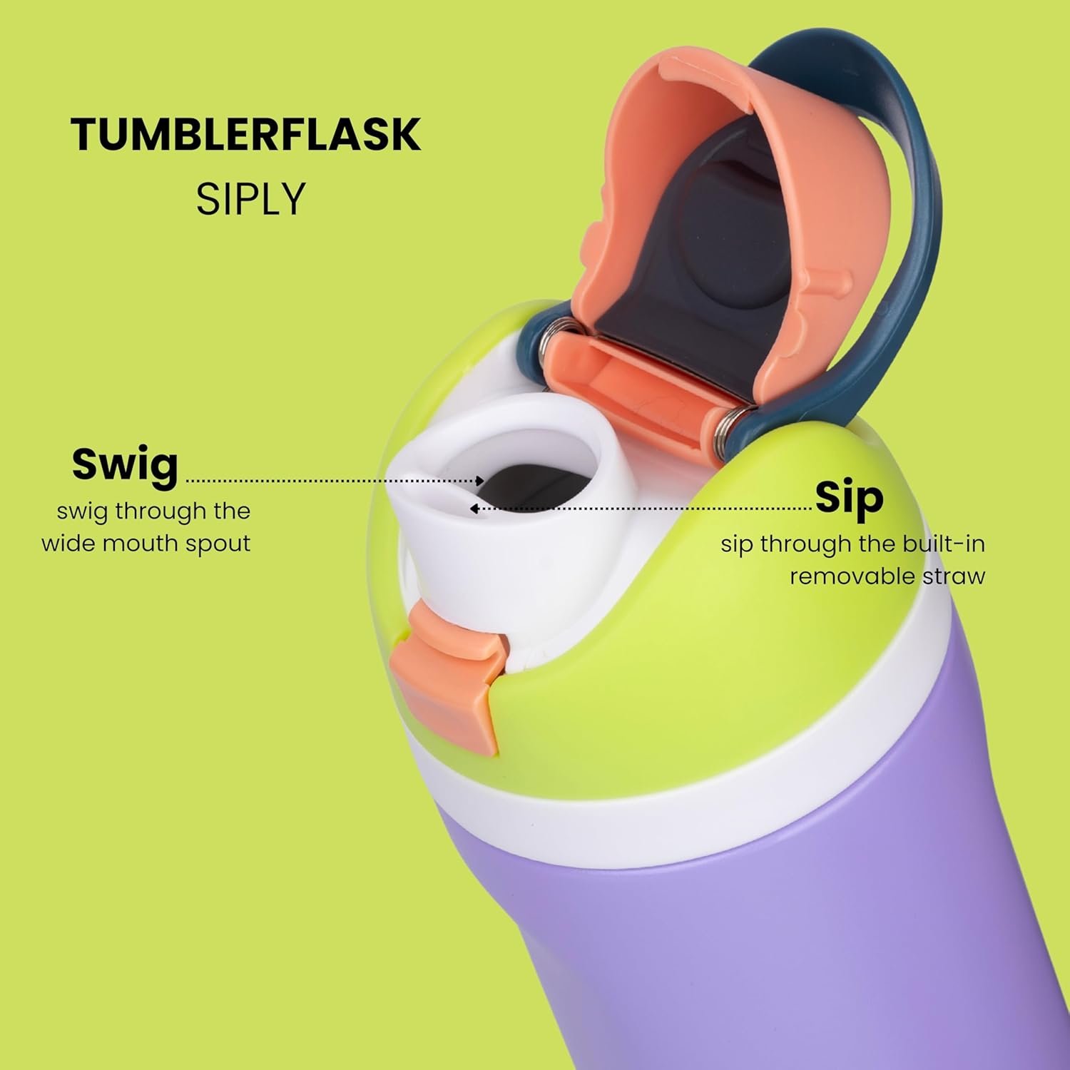 • FreeSip spout designed for either sipping upright through the built-in straw or tilting back to swig from the spout opening