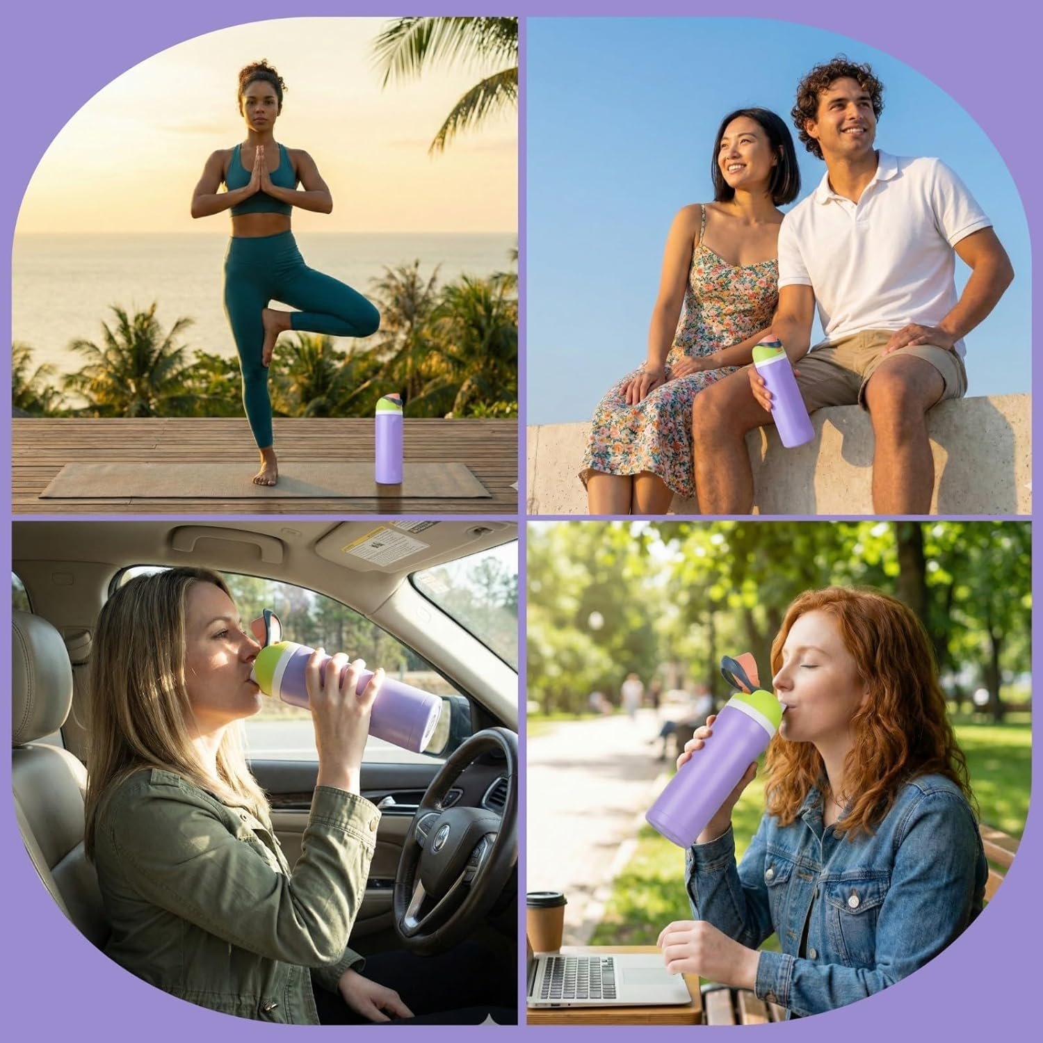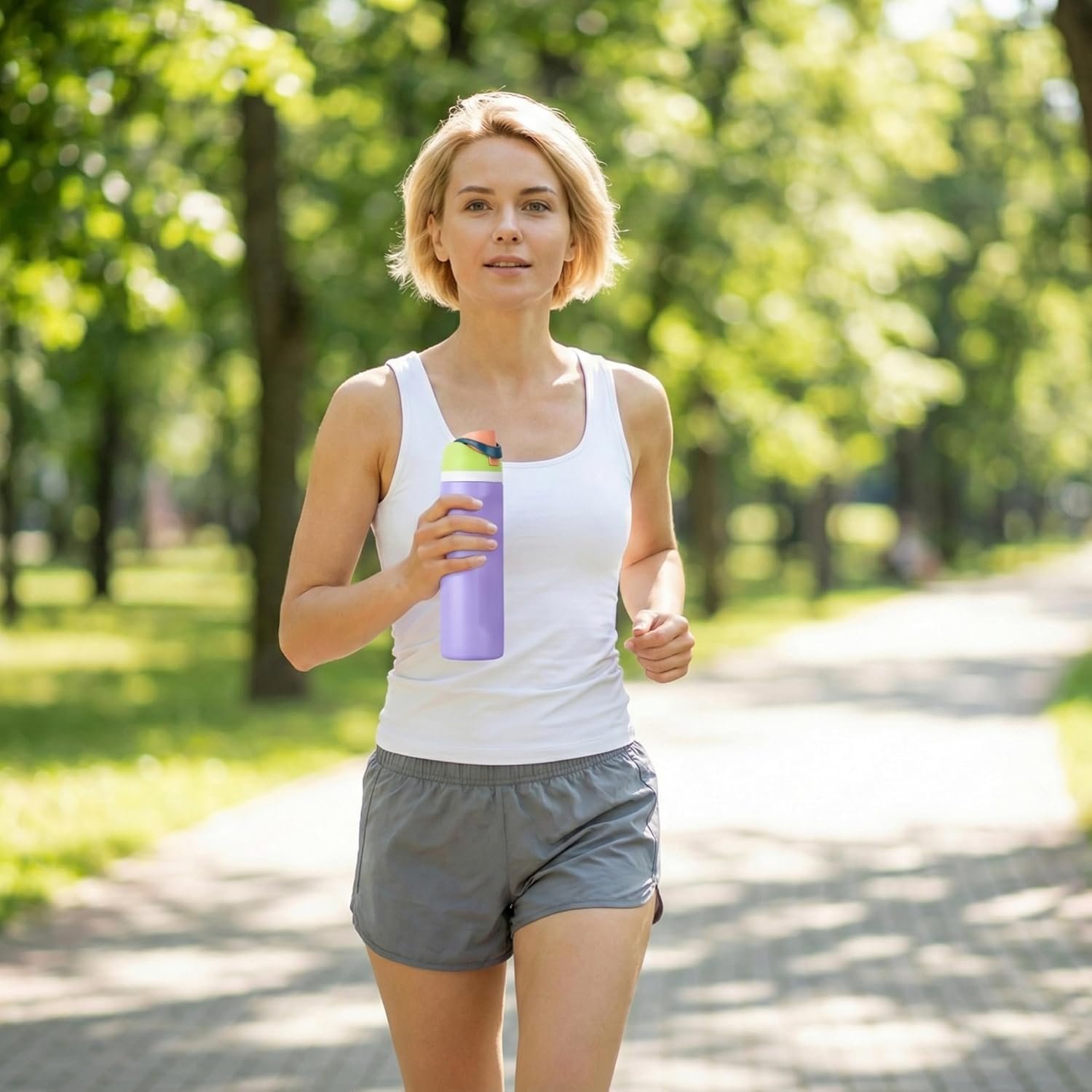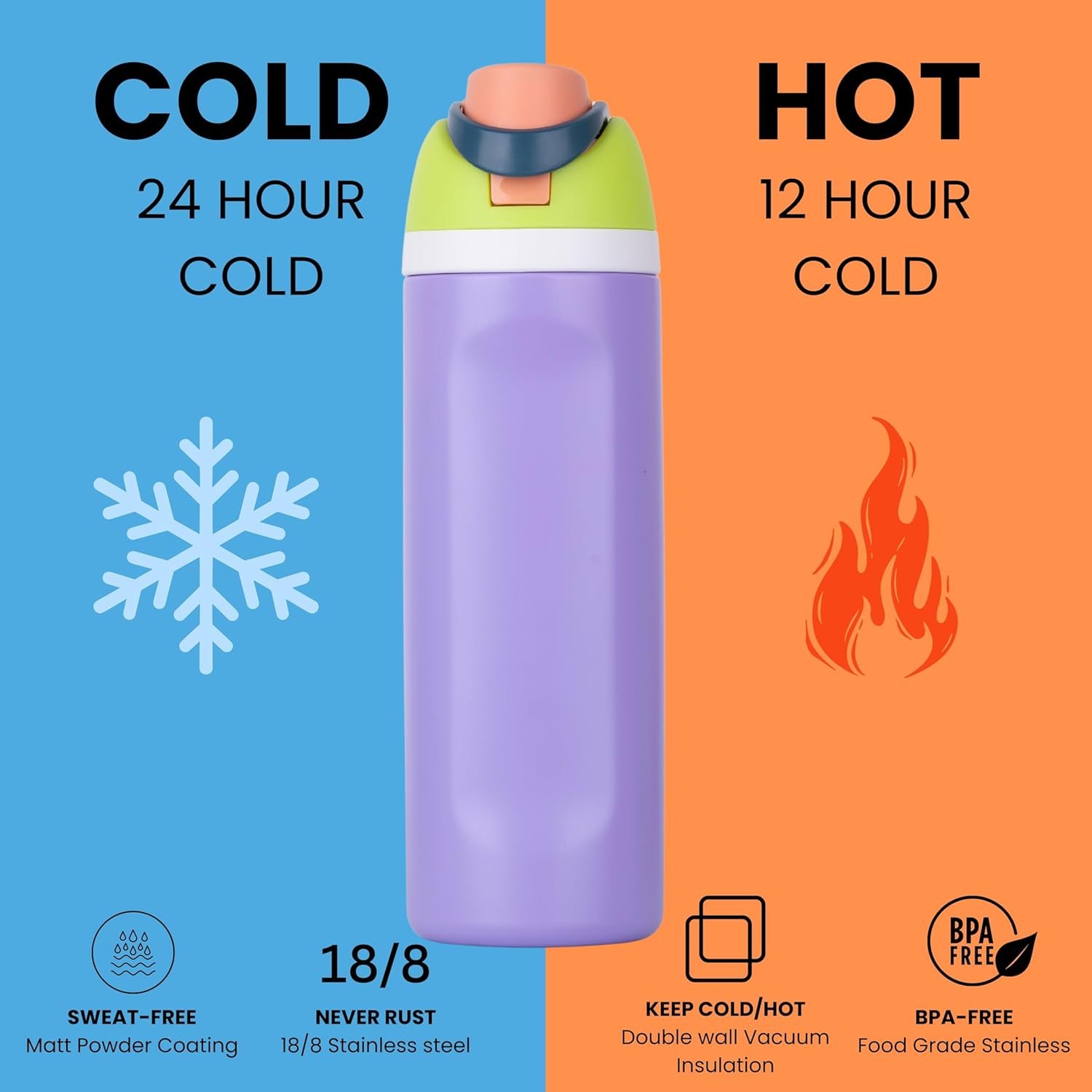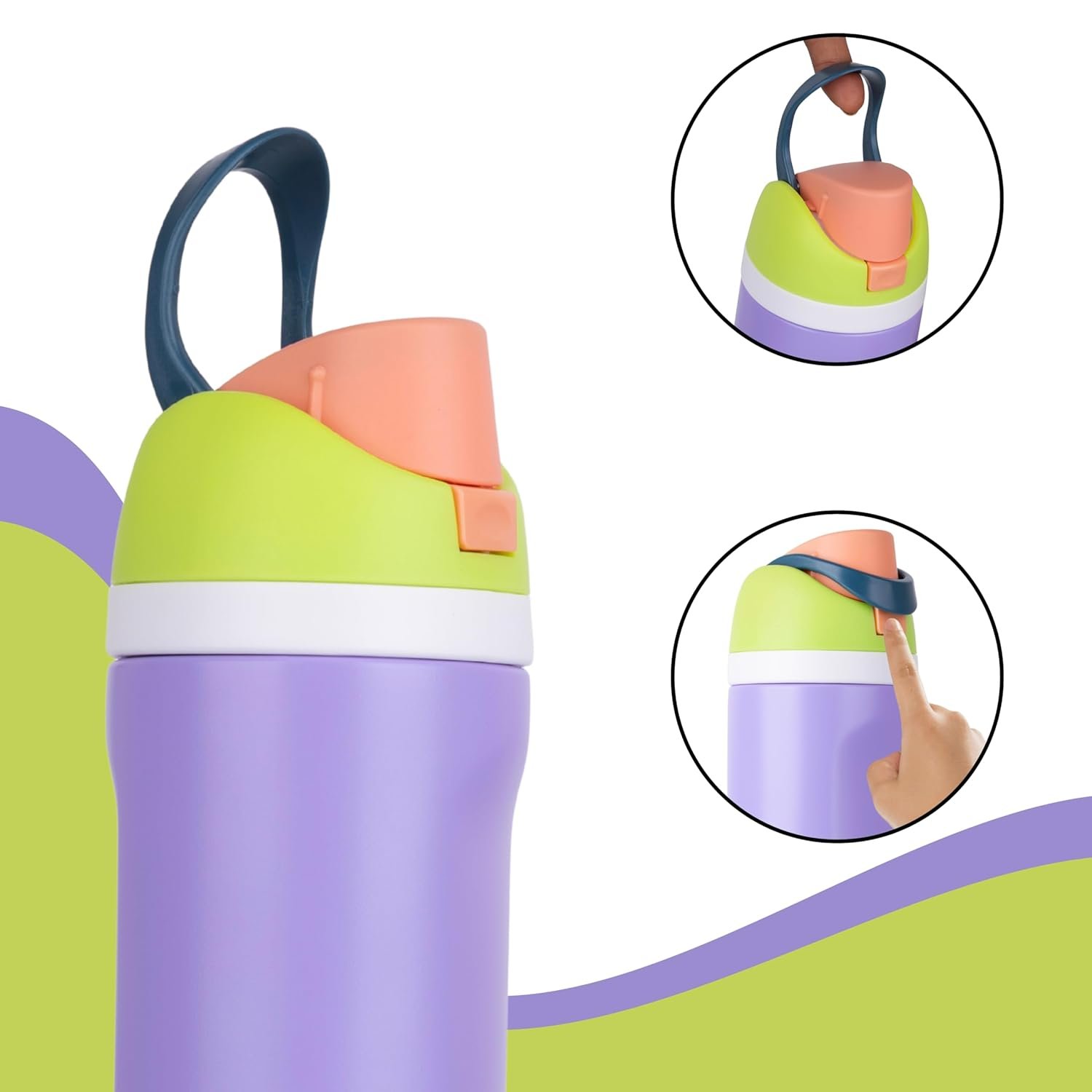 • 24-ounce insulated stainless-steel water with a FreeSip spout and push-button lid with lock