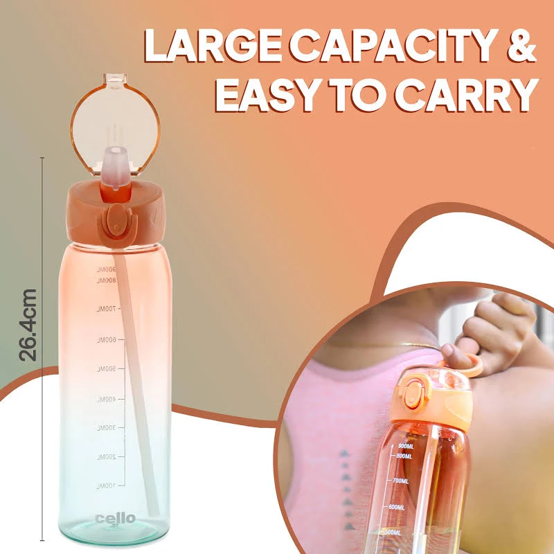 Stay hydrated in style with this sleek gradient water bottle. Designed with a secure flip-top lid and built-in straw, it offers easy, spill-free sipping on the go. Made from BPA-free, durable material, it’s lightweight yet sturdy for daily use. Clear measurement markings help you track your water intake, making it ideal for the gym, office, school, travel, and outdoor activities. Easy to carry, easy to clean, and perfect for an active lifestyle.