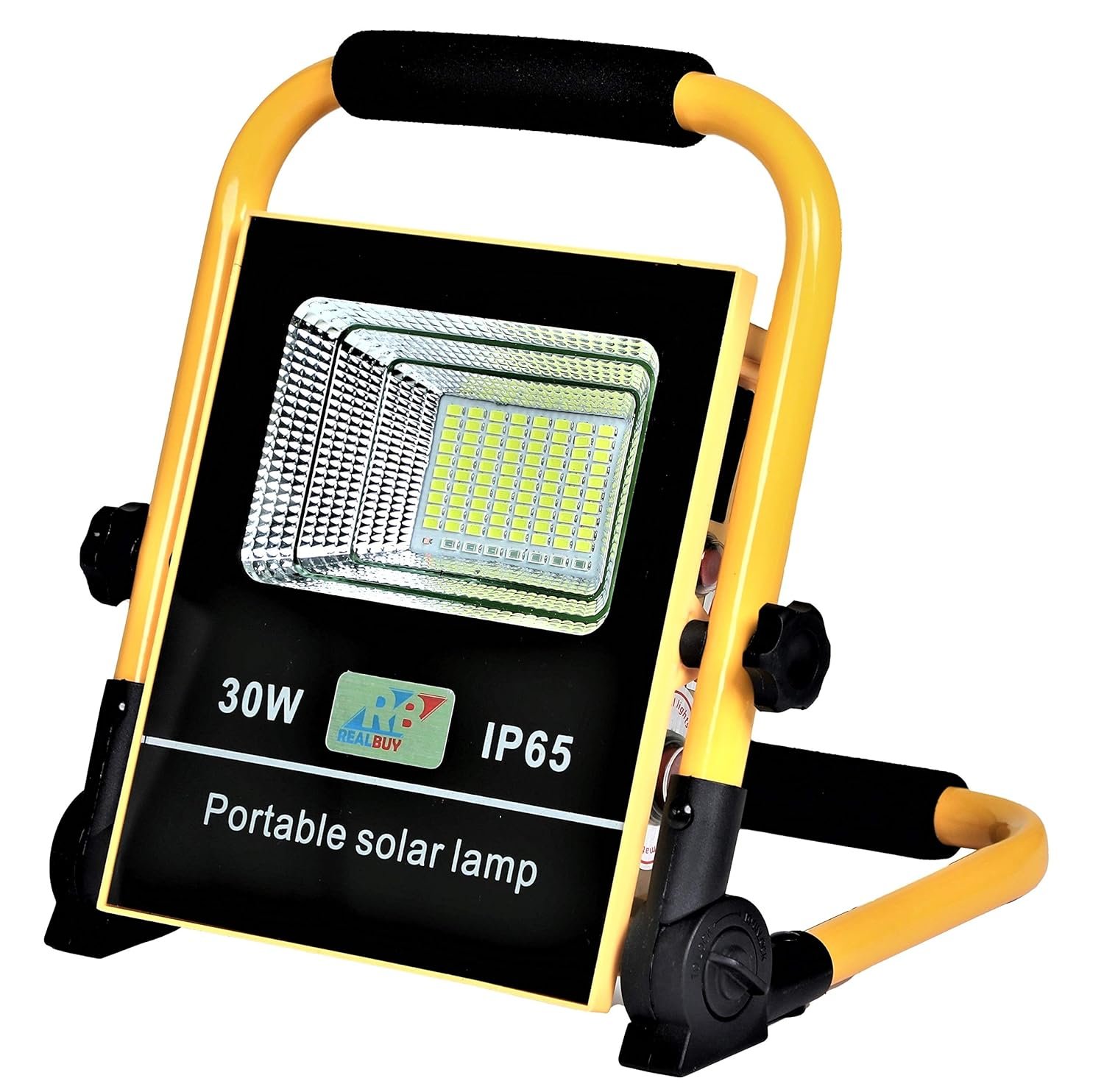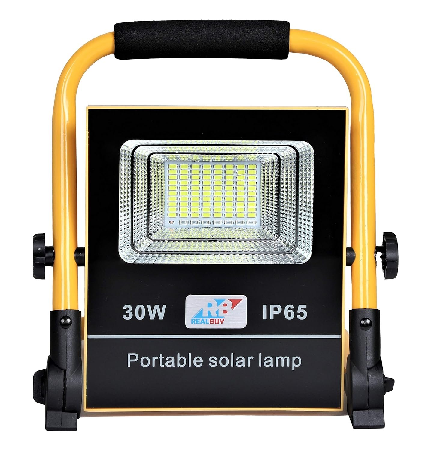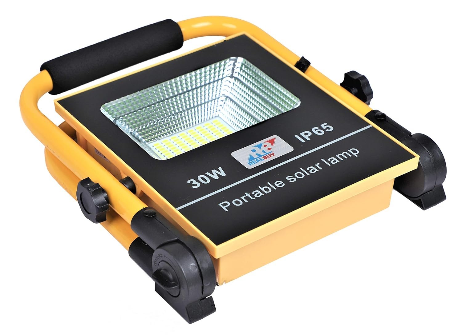 Multi-Functional Rechargeable Portable Solar LED Flood Light/Solar Lamp 30W with 5000 mAh LiFePO4 Battery & USB-Out for Mobile Charging (IP 65 Water-Proof, Cool White)