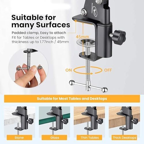 - Space-Saving & Extendable Design: 29.5-inch flexible arm extends reach for wide-angle setups while folding compactly when not in use — perfect for creators, students, and professionals.