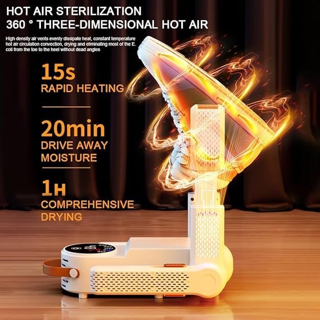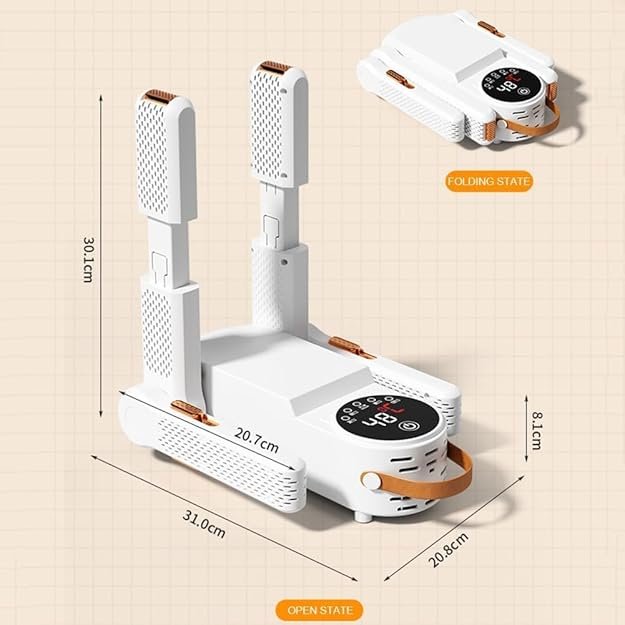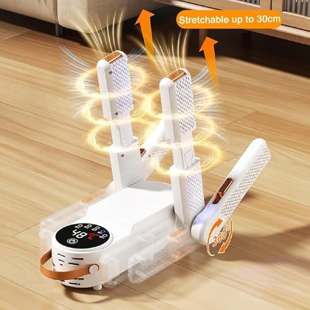 This electric shoe dryer appears ideal for athletes, outdoor enthusiasts, families, and anyone living in humid or rainy climates. By combining adjustable arms, even heat distribution, customizable settings, and a foldable structure, the product offers a practical solution for maintaining dry, fresh footwear while preserving material quality.