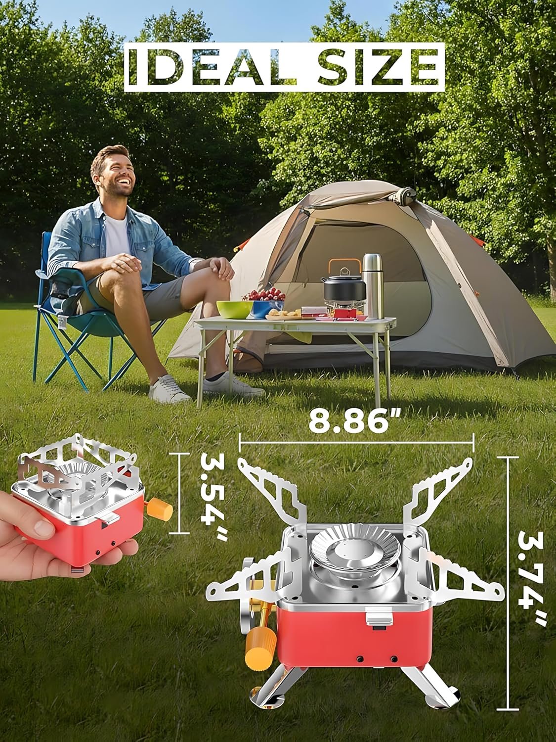 - MATERIAL & COLOR – This Portable Gas Stove Is Made With High Quality Water-resistant Stainless Steel. And This Outdoor Camping Stove Is Comes With Its Own Mesh Carry Bag So You Can Easily Carry With You Anywhere Like Picnic, Camping, Hiking, Travelling, Trip, Tour, Or Other Outdoor Activities. This Backpacking Stove Is Comes With In Red Color.