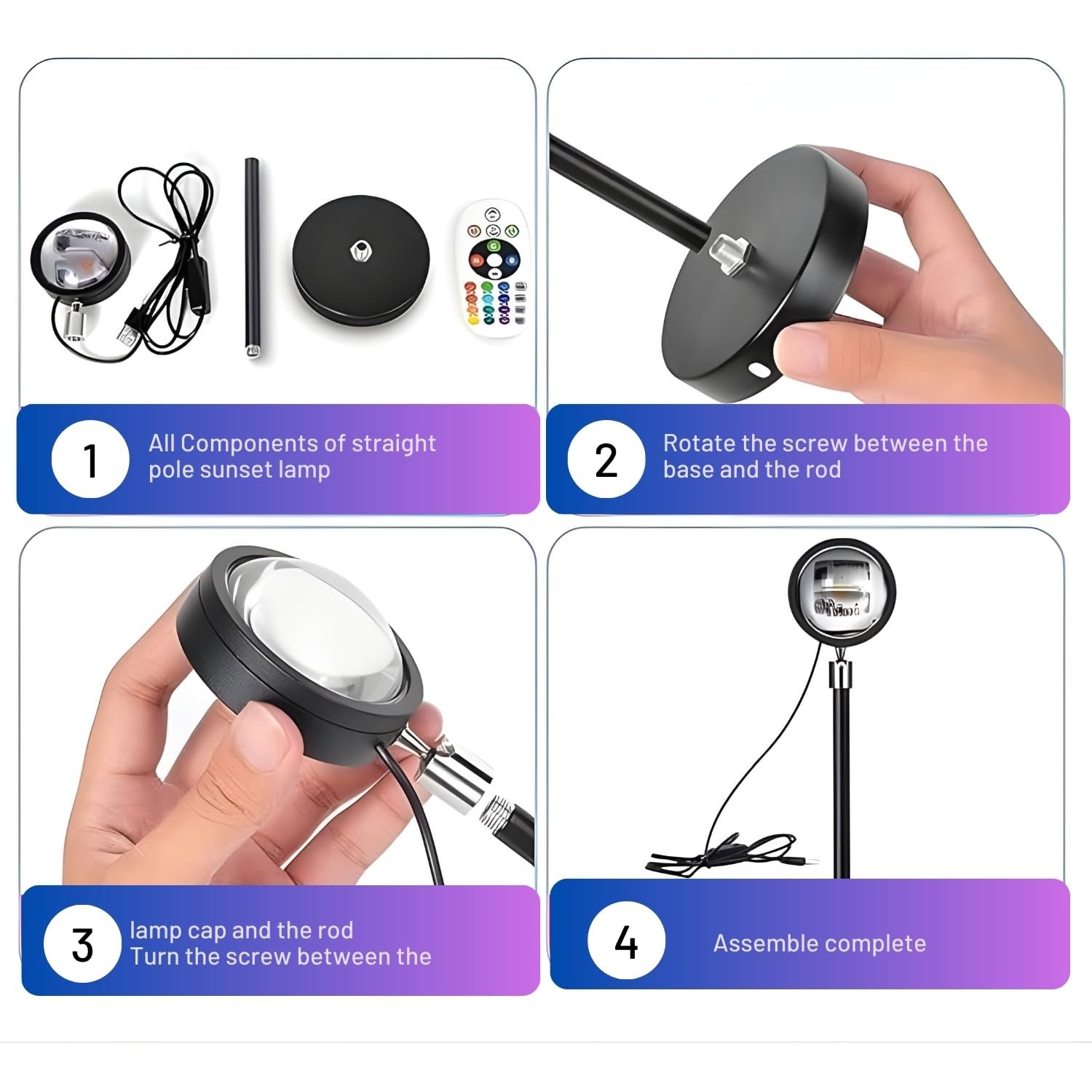 - đŠ Package Contains: 1 Ă One94Store RGB Sunset Projection Lamp, 1 Ă Remote Control, 1 Ă USB Power Cable