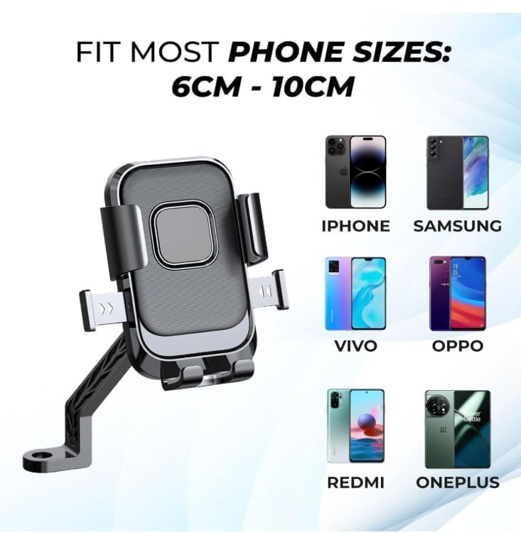 • 🥇Universal Compatibility: Adjustable holder securely fits smartphones of various sizes, providing a stable grip for your device during rides